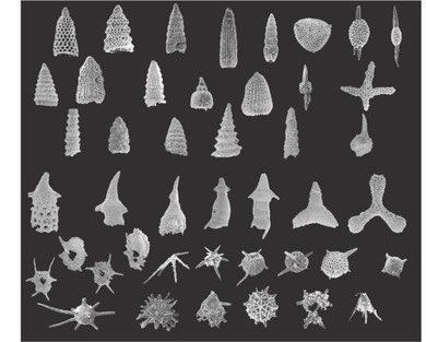 青い海に漂うミクロな生き物「放散虫」の化石を、大~っきく拡大して、レプリカにします。