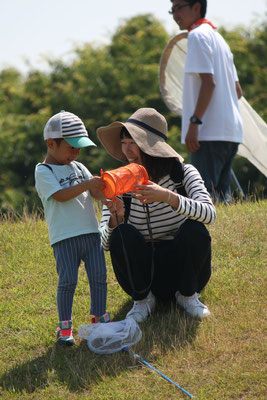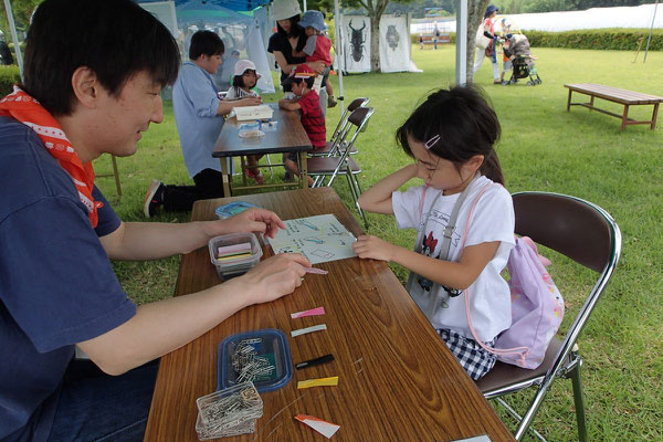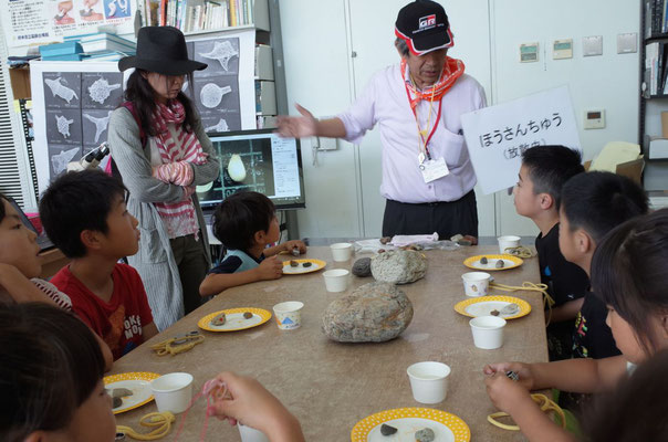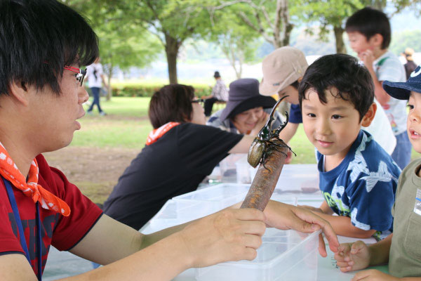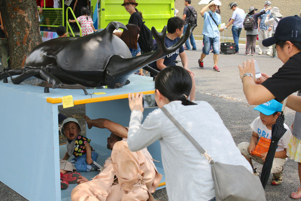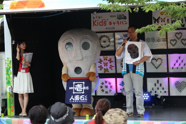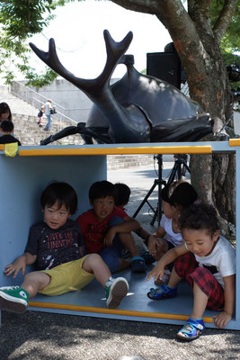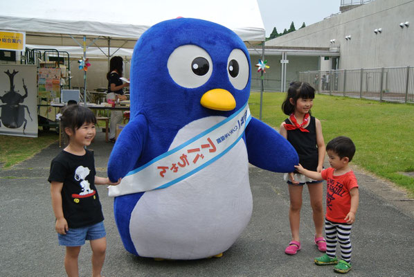 クイズ大会のお手伝いもしたコロよ〜。左から、クワガタ、カブトムシ、ころう君。
