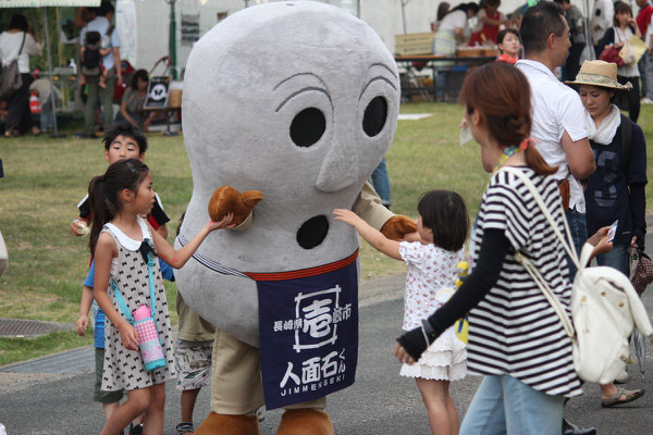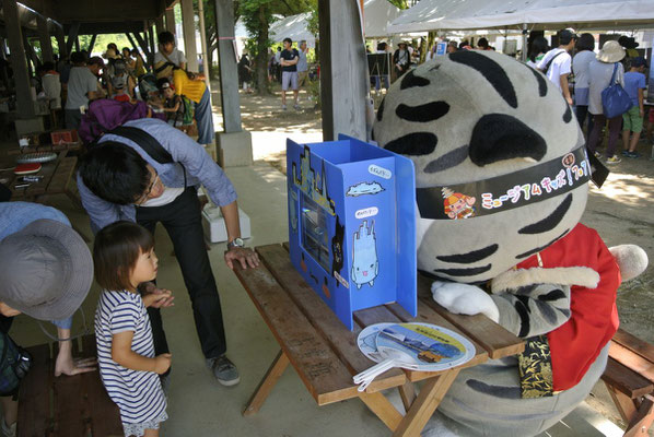 京都国立博物館のトラりんに、長崎ペンギン水族館のアバちゃん、そして長崎県壱岐市の人面石くん、キャラクター揃い踏みコロ〜♪