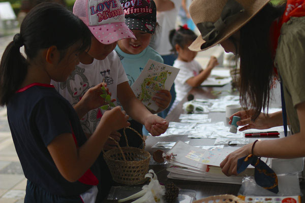 博物館のまわり(県立東ヶ丘公園)で、ミューキッズビンゴをしました。